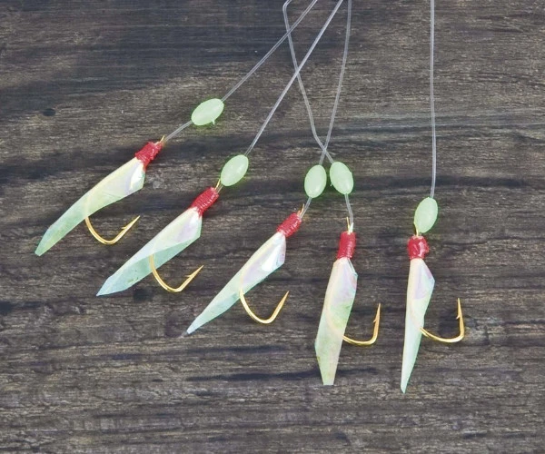 Deze āpaternosterā-onderlijn is ideaal voor de visserij op haring. Op deze onderlijn zitten 5 vlijmscherpe goudkleurige haken, die zijn afgewerkt met een stukje vissenhuid om de aantrekkingskracht te vergroten.