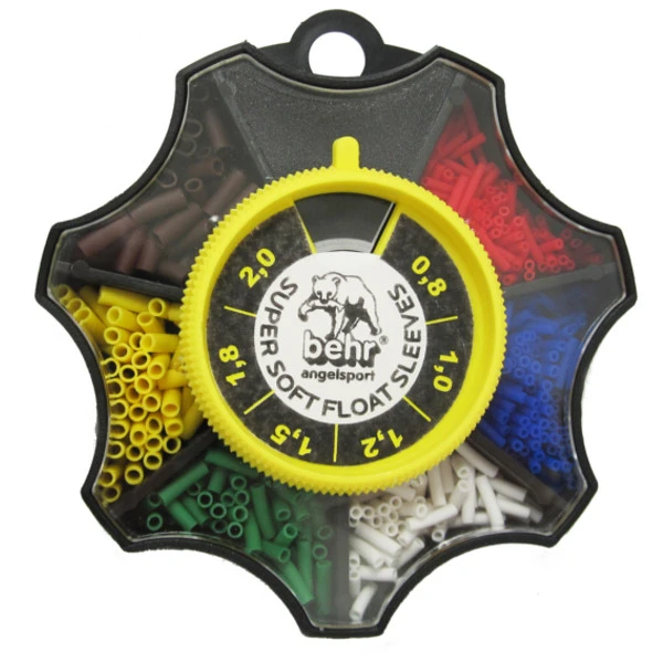 Behr Super Soft Float Sleeves zijn gemaakt om je hoofdlijn eenvoudig aan je dobber te bevestigen. Rijg de lijn door de sleeve en schuif de sleeve over je dobber heen en je dobber is klaar voor gebruik! Een verpakking bevat 6 kleuren in 6 verschillende diameters. Onmisbaar in elke viskoffer!