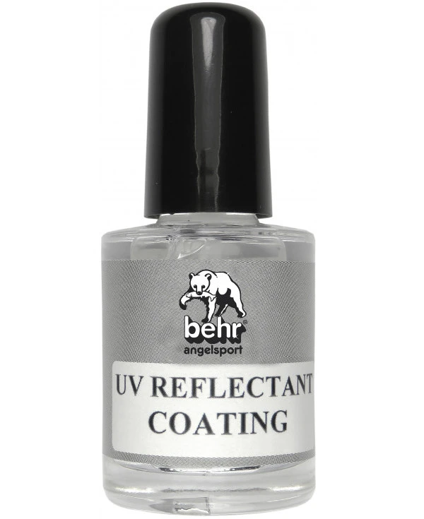 Veel rovers jagen voornamelijk op zicht en juist daarom is elke upgrade om je kunstaas opvallender te maken van belang. Met de UV Reflectant Coating van Behr zal je rovers zoals baars, snoek, roofblei, forel en zeebaars van verre aantrekken door de UV reflecterende eigenschappen. Met het handige kwastje kan je eenvoudig en snel je hardbaits, softbaits, lepels, spinners, vliegen en andere soorten kunstaas insmeren. Ideaal om onder donkere omstandigheden je kunstaas net even die extra aantrekkingskracht te geven. Geschikt voor zoet- en zoutwater.