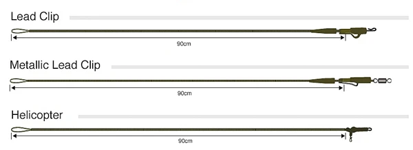 De bovenste lusverbinding maakt het eenvoudig om het tuig op de hoofdlijn aan te sluiten, terwijl het ondereinde is uitgerust met een Quick Change-wartel of een swivel waar de onderlijn aan bevestigd kan worden.De leaders zijn verkrijgbaar in 3 varianten: Leadclip, Metallic Leadclip en Helicopter. Zie foto voor details.