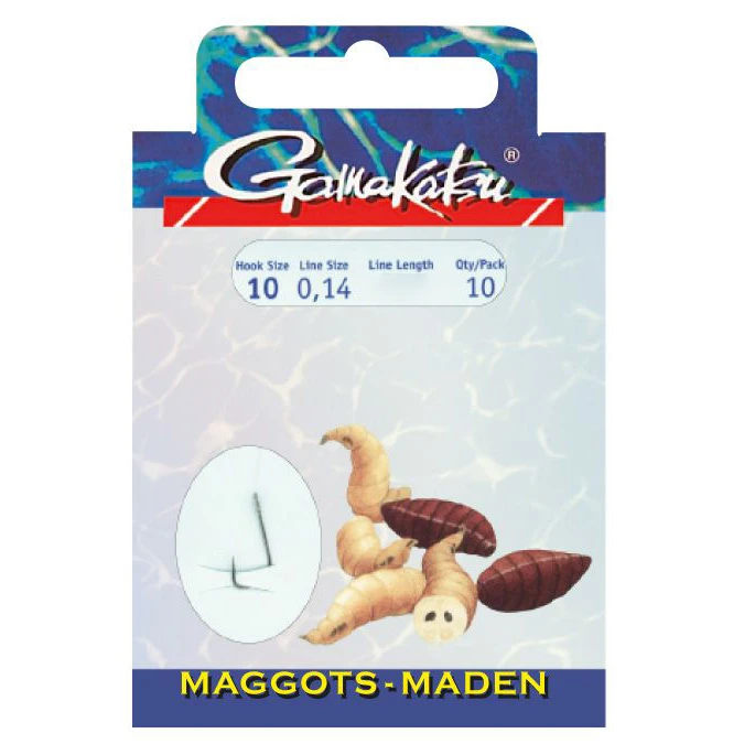 Gamakatsu Maggots LS-1010 zijn kant-en-klare witvisonderlijnen die speciaal ontwikkeld zijn voor de visserij met maden. De onderlijnen zijn voorzien van een voorgeknoopte lus. Hierdoor kan de onderlijn snel en gemakkelijk aan de hoofdlijn bevestigd worden.