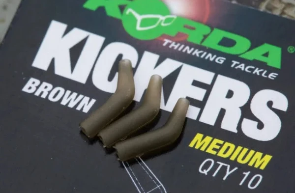 De Korda Kickers Brown is materiaal waarmee je een knik in je lijn bij de haak creëert. Dit verbetert de inhaking van de vis. De Korda Kickers maken het mogelijk om snel een goede rig te knopen, de kickers zijn kant-en-klaar. De Kickers plaatst u eenvoudig in de juiste positie over uw haakoog. Tijdens het drillen van een vis buigen de Kickers recht en voorkomen hierdoor dat knopen en vissen beschadigd raken. Ideaal om de vis goed te haken! Verkrijgbaar in verschillende groottes.