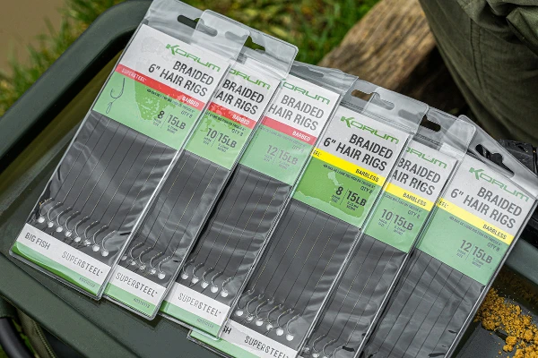 Korum Big Fish Braided Hair Rigs 6″ 8pcs Size 12 Barbed