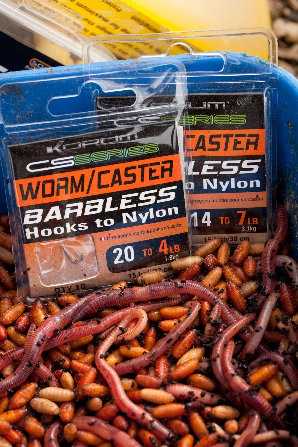 Korum CS Series Barbless Hooks To Nylon Worm/Caster Hook 14