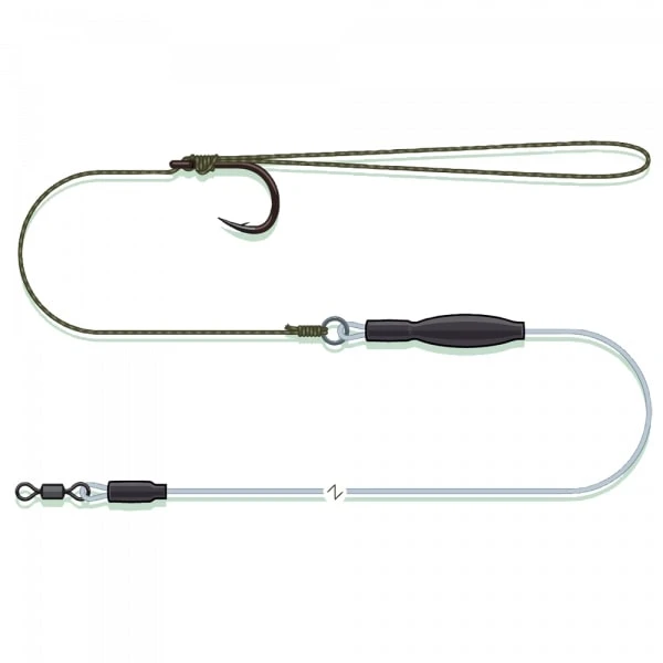 Wanneer je je aas extra opvallend wilt maken, kan een pop-uppresentatie de game changer zijn. Deze rig is voorzien van een antistatische, met shrink tube bedekte olijflood die zelfs de meest drijvende pop-ups op hun plaats houdt. Verder bestaat de onderlijn voor een deel uit nylon en een deel uit gevlochten draad, om zo een geweldige aaspresentatie te garanderen. Een geweldige rig voor de visserij op meerval!