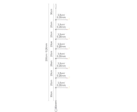 Deze paternosters van Spro zijn supermakkelijk in gebruik. Je bindt de lijn aan je hoofdlijn, prikt je aas op de vlijmscherpe haken en je kan vissen. De onderlijn is handgebonden uit stevig fluorocarbon, wat je lijn nagenoeg onzichtbaar maakt onder water. De kleurige veren op de zijlijnen bieden je aas extra aantrekkelijk aan en trekken snel de aandacht van de vis. De afhouders zorgen ervoor dat je aas niet in je lijn draait. Je kan deze onderlijnen gebruiken bij het vissen vanuit een boot of vanaf de kant. Er is een versie beschikbaar met 3 haken en een met 6 haken, beide verkrijgbaar in verschillende kleuren.