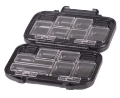 Deze compacte box van Strategy is ideaal voor het opbergen van klein materiaal als wartels, sleeves, etc… Door zijn compacte formaat past hij makkelijk in ieders jaszak of vistas. Je materiaal zit netjes overzichtelijk opgeborgen in aparte compartimenten met handige doorzichtige deksels. Gemaakt uit stevig kunststof dus waterdicht en schokbestendig.