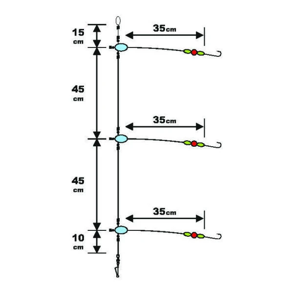 Deze kant en klare onderlijnen van Sunset brengen jou alle gemak en zekerheid. Ze zijn 1,15 meter lang en gemaakt van 100% fluorocarbon. Ze zijn eveneens voorzien van drie zijlijnen van 35cm met transparante en gekleurde kralen voor maximale attractie. Deze onderlijn is goed te gebruiken in combinatie met wormen, inktvis, makreel enzovoorts. Het voordeel van fluorocarbon is dat het nagenoeg dezelfde brekingsindex heeft als het water en daardoor zo goed als onzichtbaar is. Ideaal voor snel schrikkende vissen. Deze onderlijnen zijn er in verschillende uitvoeringen zodat er altijd eentje is die bij jouw type visserij past!