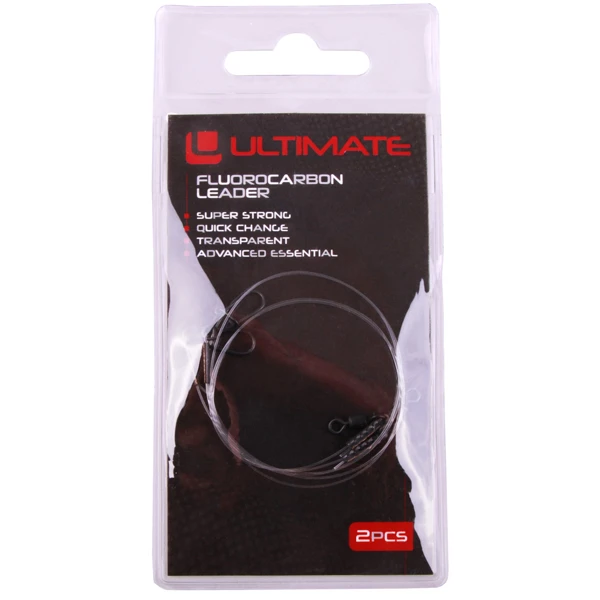 Deze Ultimate Fluorocarbon Leaders zijn onmisbaar bij de jacht op roofvis. Zonder sterke leader is de kans groot dat je lijn breekt door de scherpe tanden van een snoek of andere roofvis. Bovendien zijn deze leaders gemaakt van fluorocarbon, een transparant materiaal dat onder water praktisch onzichtbaar is. Deze supersterke leaders zijn 30 cm lang en voorzien van een rolling swivel aan de ene kant en een quick snap aan de andere kant. Perfect voor het snel wisselen van kunstaas. De Ultimate Fluorocarbon Leaders zijn verpakt per 2 stuks en verkrijgbaar in meerdere varianten.