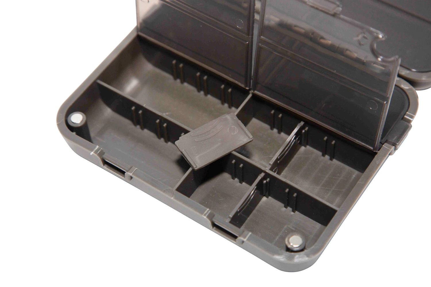 De Ultimate Multi Box heeft een handige deksel met magnetische sluiting waardoor deze snel en eenvoudig te openen is. De box is gedeeltelijk zelf aan te passen met de meegeleverde dividers zodat je je eigen indeling kunt maken. Dankzij het compacte formaat past de box perfect in een vistas of jaszak. Ideaal voor het georganiseerd opbergen en transporteren van lood, haken en ander klein materiaal!
